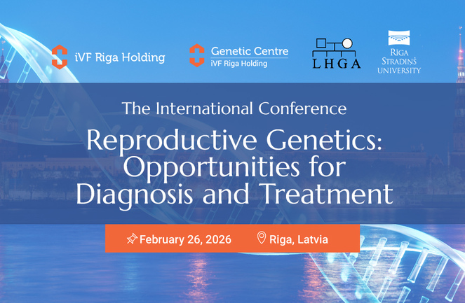 Mēs esam priecīgi dalīties, ka 2026. gada 26. februārī iVF Riga Holding sadarbībā ar Rīgas Stradiņa universitāti un Latvijas Cilvēka Ģenētikas asociāciju organizē un rīko starptautisko konferenci “Reproduktīvās ģenētikas iespējas diagnostikā un ārstēšanā”, kuras mērķis ir pētīt reproduktīvās ģenētikas sniegtās nozīmīgās iespējas diagnostikā un ārstēšanā.